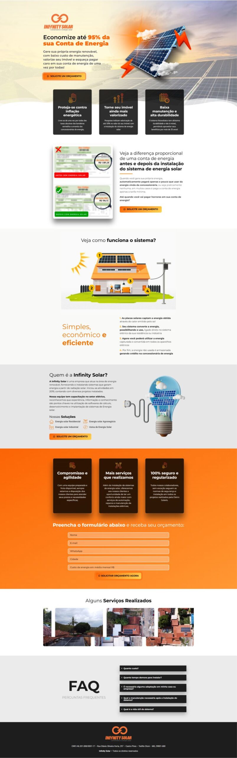Como trabalhamos com mais de um tipo de serviço, cada um varia de acordo com o tamanho do negócio e a necessidade do projeto específico. Para saber mais sobre seu projeto, clique no botão e faremos um orçamento.